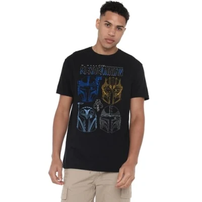 Star Wars The Mandalorian Helmets Unisex T Shirt, Black, X Large