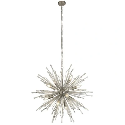 Starburst 8 Light Satin Silver Ceiling Pendant with Clear Glass Bead Detail