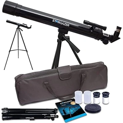 Stargazer Telescope for Kids And Beginners, Portable Refractor Astronomy 50mm Aperture 400mm Focal Length with Eyepieces, Adjustable Tripod, Carry Bag, Set Moon & Planets