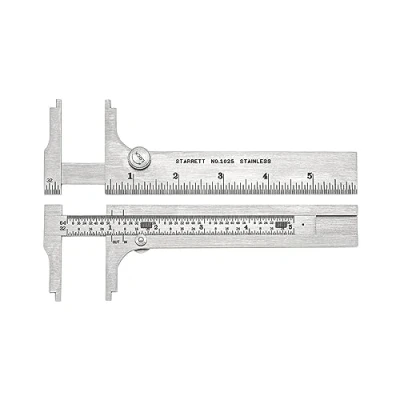 1/64" precision for quick and accurate outside and inside measurements Compact to easily fit in shop coat pocket Inch scale on the back of the stock allows for use as a steel rule as well Knurled thumb pieces activate the slide and allow for easy one-hand operation Straight measuring surface offers simple outside measuring while rounded nibs are used for inside and hole measurement
