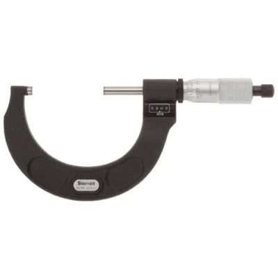 Tapered frame for measuring narrow slots and tight spaces Mechanical digit counter for ease of reading to 0.01mm Ratchet-stop mechanism helps provide uniform pressure for precise, repeatable measurements Satin chrome finish on thimble and sleeve helps resist rust and reduce glare Micro-lapped carbide measuring faces help provide accuracy and wear resistance