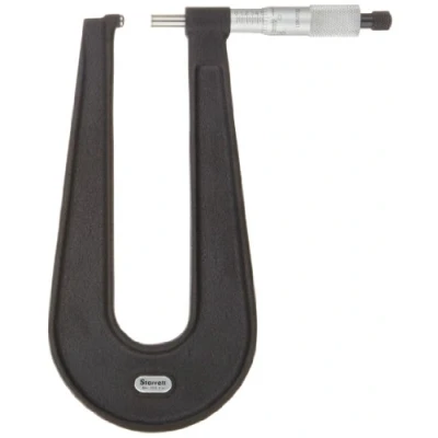 Deep-throated frame for measuring thickness of sheet metal, paper, plastic or rubber parts Vernier scale in inch units for taking precise outside diameter (OD) measurements Ratchet-stop mechanism helps provide uniform pressure for precise, repeatable measurement Black wrinkle finish helps resist rust and reduce glare Micro-lapped carbide measuring faces help provide accuracy and wear resistance