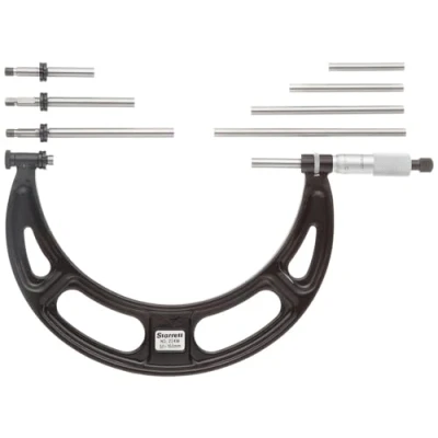 Includes interchangeable anvils for a diverse measuring range Nonier scale in metric units for precise measurements of outer diameter (OD) Ratcheting stop mechanism ensures consistent pressure for precise, repeatable measurements Satin chrome finish on thimble and sleeve helps resist rust and reduce glare Micro-lapped steel measuring surfaces ensure accuracy