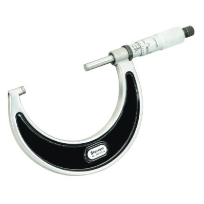 Vernier scale in inch units for taking precise outside diameter (OD) measurements Knurled friction thimble helps provide quick adjustment capability Baked enamel finish for protection and durability of frame Satin chrome finish on thimble and sleeve helps resist rust and reduce glare Micro-lapped carbide measuring faces help provide accuracy and wear resistance