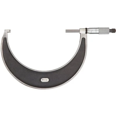 Vernier scale in inch units for taking precise outside diameter (OD) measurements Knurled friction thimble helps provide quick adjustment capability Baked enamel finish for protection and durability of frame Satin chrome finish on thimble and sleeve helps resist rust and reduce glare Micro-lapped carbide measuring faces help provide accuracy and wear resistance