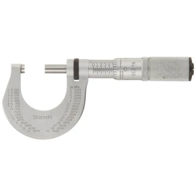 Inch vernier scale to take accurate measurements of outer diameter (OD) Friction thimble mechanism helps provide even pressure for accurate and repeatable measurement Satin chrome finish helps resist rust and reduce glare High quality tool steel construction for durability Micro-lapped measuring faces help provide accuracy