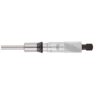 Vernier scale in inch units for taking precise measurements to 1” Knurled ring-type lock nut to hold measurements in place Satin chrome finish helps resist rust and reduce glare Hardened steel spindle to help provide durability Micro-lapped measuring face helps provide accuracy