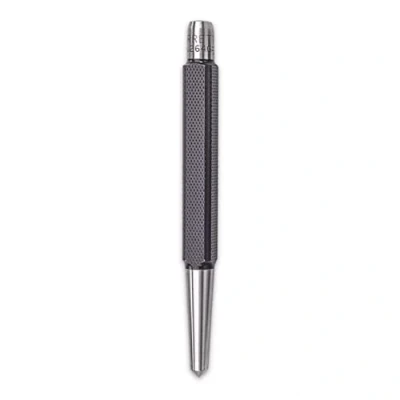 Centre punch with 5" length and 1/4" diameter tapered point makes a starter dimple to guide a drill bit Point is hardened steel for wear resistance Shank is tempered steel for strength Square shank will not roll when set down and is knurled for grip
