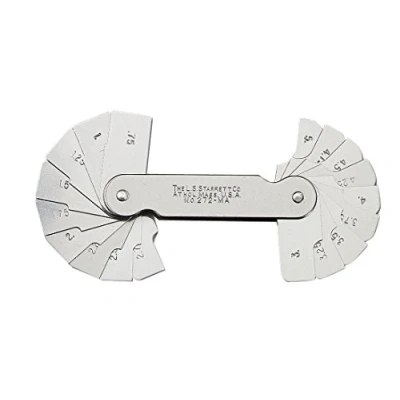 External and internal radius on each leaf Permits concave and convex surfaces to be measured Specially shaped leaves for use in any position Measures fillets and radii 16 leaves, 5.5 - 13mm Package Dimensions: 2.794 H x 13.208 L x 3.302 W (centimetres) Package Weight: 0.3 pounds Country of Origin : United States