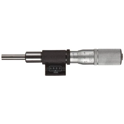 Mechanical digit counter for ease of reading to 0.01mm Knurled ring-type lock nut to hold measurements in place Satin chrome finish helps resist rust and reduce glare Hardened steel spindle to help provide durability Micro-lapped measuring face helps provide accuracy