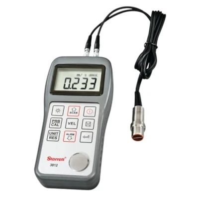 Range: 0.040-12.0" measuring range (in steel with standard probe) Accuracy: ± (0.5% thickness + .001") Resolution: Minimum display unit: 0.001" (0.01mm) selectable