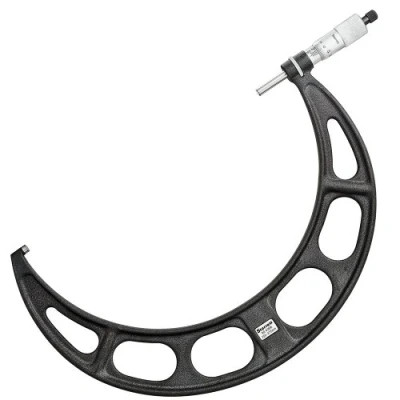 Temple micrometer for measuring large external dimensions Vernier calipers in inch units for precise measurements in outer diameter (od) Ratchet stop mechanism ensures consistent pressure for precise, repeatable measurements. Satin chrome finish on thimble and sleeve protects against rust and reduces glare. Micro-lapped carbide measuring surfaces ensure accuracy and wear resistance.