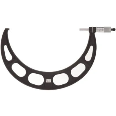 Bow-type micrometer for measurement of large outside dimensions Vernier scale in inch units for taking precise outside diameter (OD) measurements Ratchet-stop mechanism helps provide uniform pressure for precise, repeatable measurements Satin chrome finish on thimble and sleeve helps resist rust and reduce glare Micro-lapped carbide measuring faces help provide accuracy and wear resistance