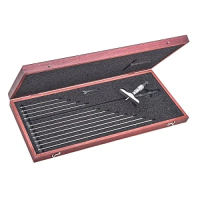 Measurement range of 0 up to 12", and resolution of 0.001" Vernier scale for precise measurements in fine units Includes 1/8" diameter adjustable measuring rods to cover the range Bases and measuring surfaces are hardened, ground, and lapped for durability and accuracy Ring-type knurled lock nut and combination ratchet and speeder for precise measurements