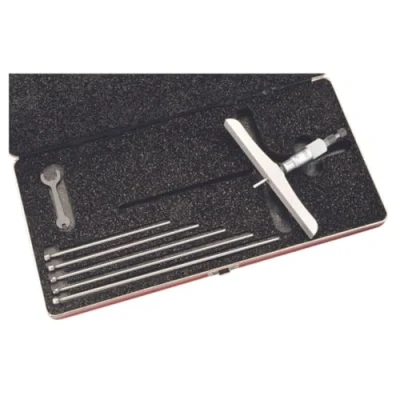Measurement range of 0 up to 12", and resolution of 0.001" Vernier scale for precise measurements in fine units Includes 1/8" diameter adjustable measuring rods to cover the range Bases and measuring surfaces are hardened, ground, and lapped for durability and accuracy Ring-type knurled lock nut and combination ratchet and speeder for precise measurements