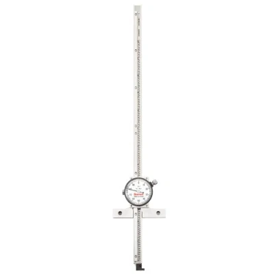 Measurement range of 0 to 12" and resolution of 0.001" White face dial displays in U.S/metric, 0 to 100 dial reading Hardened stainless steel for durability and accurate measurements Knurled nut holds gauge securely Optional base extensions of 7" and 12" are available to increase base span (sold separately)
