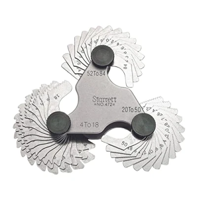 Starrett 472 Screw Pitch Gage With Locking Device, 4 84 Threads Per Inch, 51 Leaves
