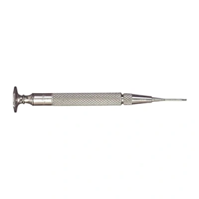 The body is made from steel, nicely knurled and nickel-plated Ideal for relatively small and very delicate work Body is made from knurled, nickel-plated steel The swivel knob is concave to fit the finger and hexagonal in shape to prevent rolling The screwdriver blade width is 1 mm