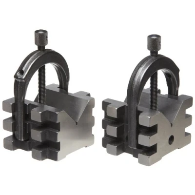 Starrett 568C 2 V Blocks And Clamp (Matched Pair) Complete Set, 2" Diameter Round Capacity, 1 7/16" Square Capacity (1 9/16" With Screw At Top)