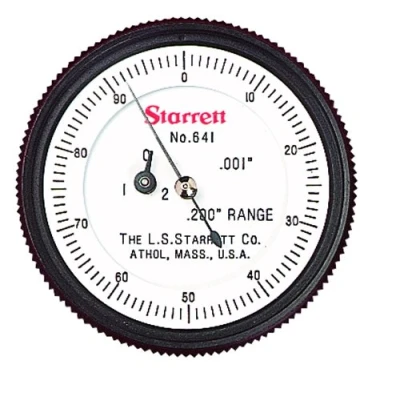 Starrett 641 Dial Indicator without Shank, 0.374" Stem Dia., Back Plunger, White Dial, 0 100 Reading, 1.673" 0.2" Range, 0.001" Graduation
