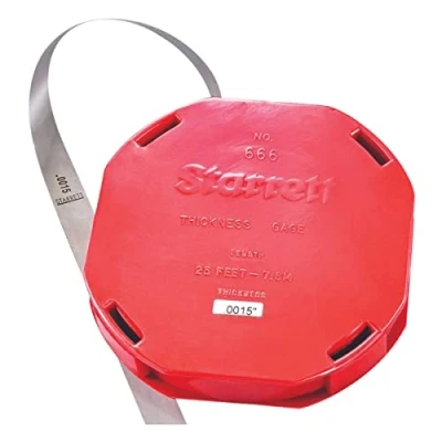 Case provides the ability to snip off the desired length without any waste In a compact, sturdy plastic rewindable dispenser case handles stock up to 0.015" Material: Steel Rewind feature permits retracting thinner feeler stock into the case, preventing damage