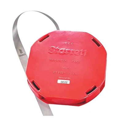 Rewind feature permits retracting thinner feeler stock into the case, preventing damage Case provides the ability to snip off the desired length without any waste In a compact, sturdy plastic rewindable dispenser case handles stock up to 0.015" to Use Material: Steel