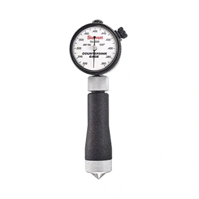 Industry Leading Quality - Starrett gages are built to last, with an industry leading quality that you can trust. The ground surfaces are of hardened tool steel, includes set master ring. Gauges furnished in deluxe padded case The Standard for Excellence - Manufacturing quality tools that provide consistent and reliable performance since 1880, Starrett's commitment has earned them a reputation as one of the most trusted names in the industry. Easy to Use - Simply place the gage on the angular side of the countersink, adjust to fit, and read the measurement off of the scale. No guesswork required! Indicators are AGD design Outstanding Features - Starrett Countersink Gages are offered in three different angles so that the gage sets on the angular side of the countersink, as opposed to a chamfer gage which sets on the top edge of the chamfer.