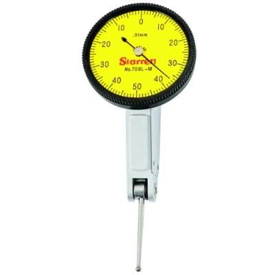 Starrett 709MALZ Dial Test Indicator without Attachments, Dovetail Mount, Yellow Dial, 0 40 Reading, 35mm Dia., 0.8mm Range, 0.01mm Graduation
