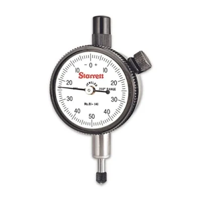 Starrett 81 141J Dial Indicator, 0.375" Stem Diameter, Lug On Centre Back, White Dial, 0 50 Reading, 1.6875" 0.25" Range, 0.001" Graduation