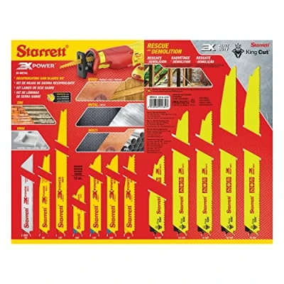 Starrett Bi Metal & Carbide Grit Reciprocating Saw Blades Assortment Pack KRB12 A WOOD, METAL, MULTI USE and HEAVY DUTY CUTTING (12 Blades)