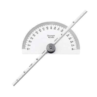 Angular measurement is from 0-180 degree in opposite directions allowing the direct reading of angles and supplementary angles This has a flat surface on the back of the head permitting laying the tool flat on paper or work No-glare satin chrome finish It has a semi-circular head Blade Graduations: 1/32", 1/64"