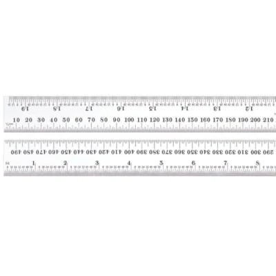 Precision rule with inch and millimetre graduations for measuring in woodworking, carpentry, and machining applications Graduations in 32nds of an inch and half millimetres on one side and 64ths of an inch and millimetres on the opposite side are photo engraved for accuracy and staggered in a height pattern for readability Spring-tempered stainless steel body construction is fully flexible for durability and flexibility Satin chrome finish for readability and rust resistance
