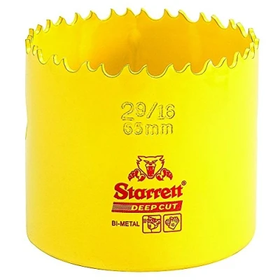 Aggressive material penetration and kerf clearance Ideal for solid materials or tubes of a wall thickness greater than 3mm 51mm hole saw depth improves cutting performance on tubes, particularly where there is a need to cut through both sides of the tube New tooth material for enhanced heat and wear resistance and greater product life Size : 65mm / 2.9/16", Manufacturer: The L. S. Starrett Company Limited