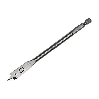 General description This flat wood drill bit is designed for precise and clean drilling into wood. It features twin spurs for accurate hole entry and exit, ensuring a smooth finish. Technical specifications Diameter: 12mm Overall Length: 152mm Shank size: 6.35mm (1/4 inch) hexagonal Compatibility and accessories Compatible with impact drills and standard drill drivers Designed to work with wood and similar materials Installation Insert the hexagonal shank into the drill chuck Ensure the drill is set to the appropriate speed and torque for wood drilling Usage Mark the drilling point on the wood surface Secure the workpiece if necessary Start drilling at a low speed, then increase as needed for efficiency Apply steady pressure for clean holes