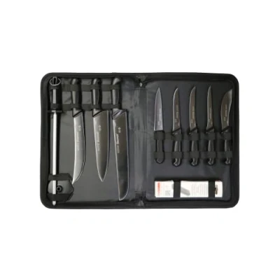 PRECISION CUTS: The Starrett's Butcher Knife Set is made from top-notch stainless steel, ensuring precise cuts and longer blade life for efficient and effective food preparation COMFORTABLE & SANITARY HANDLES: This set of knives features injection moulded ergonomic handles that are textured for maximum grip and comfort and are also treated with Antimicrobial protection for added safety and sanitation in the kitchen VERSATILE & ESSENTIAL SET: This Starrett Knife Set is an indispensable tool for all your kitchen needs, including deboning, skinning, filleting, and cutting meats, vegetables, and fruits; Whether you're a professional chef or a home cook, this set has everything you need to get the job done efficiently and effectively CONVENIENT & PORTABLE: Store and transport your Starrett kitchen knife set with ease thanks to its premium zip-opening case which keep your knives organized and protected whenever you need them COMPLETE KNIFE SET: This Starrett professional knife set includes different sizes of boning, chef's, skinning, steak, and butcher's knives, as well as sharpening tools for maintenance; With this comprehensive set, you'll have everything you need to tackle any kitchen task easily STARRETT TRACEABILITY: The guarantee of origin identification and traceability are further important advantages of the Starrett knives; With a tracking number laser stamped on the blades, Starrett ensures knives can be identified from leaving the factory NSF CERTIFICATION: All the products of the new Starrett professional knives line are certified by the NSF, which means our knives have continuous, smooths surfaces, without gaps to prevent residue