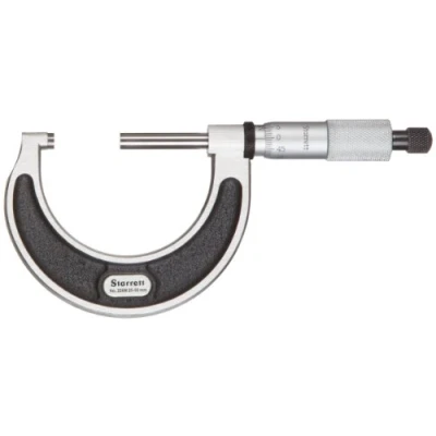 Vernier scale in metric units for taking precise outside diameter (OD) measurements Knurled friction thimble helps provide quick adjustment capability Baked enamel finish for protection and durability of frame Satin chrome finish on thimble and sleeve helps resist rust and reduce glare Micro-lapped carbide measuring faces help provide accuracy and wear resistance