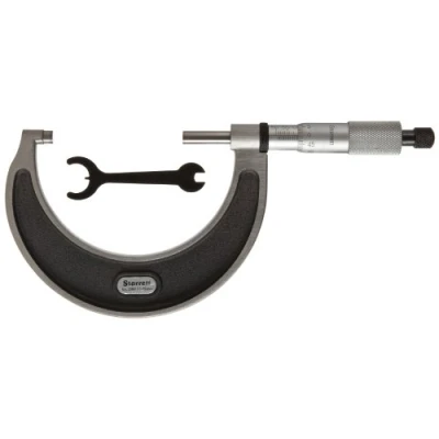 Vernier scale in metric units for taking precise outside diameter (OD) measurements Knurled friction thimble helps provide quick adjustment capability Baked enamel finish for protection and durability of frame Satin chrome finish on thimble and sleeve helps resist rust and reduce glare Micro-lapped carbide measuring faces help provide accuracy and wear resistance