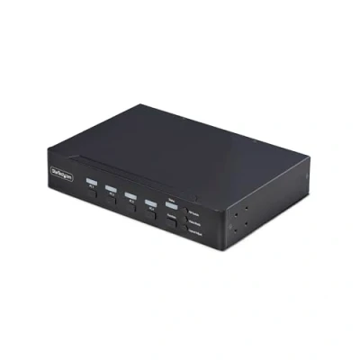 4-PORT MULTIVIEW KVM SWITCH: Control up to four DisplayPort computers using one USB keyboard, mouse, and DP monitor; Supports 4K 60Hz (4:4:4) resolution for sharp text and visuals across professional workstations; Works with Windows, macOS, and Linux MULTIPLE DISPLAY MODES FOR MAXIMUM PRODUCTIVITY: Improve efficiency, system awareness, and response time by viewing and managing up to four computers at once using Full Screen, Quad-View, Picture-in-Picture (PiP), and Picture-by-Picture (1+3 or 3+1 PbP) modes SEAMLESS MOUSE SWITCHING WITH ZERO DELAY: Instantly switch between connected computers using mouse roaming, with no screen blackout or latency; Continuous video output minimizes disruption and keeps workflows smooth in control rooms and industrial environments ADAPT SWITCHING TO ANY WORKFLOW: Switch systems using front-panel buttons, hotkeys, mouse roaming, mouse side buttons, or serial control via RJ-11 or USB-C, allowing users to manage systems in a way that best fits their environment or automation needs DUAL CONSOLE VIDEO OUTPUTS FOR GREATER FLEXIBILITY: Simultaneously display the same KVM output on two monitors (1x DP / 1x HDMI) without additional hardware, improving visibility, collaboration, and redundancy for IT and control-room environments