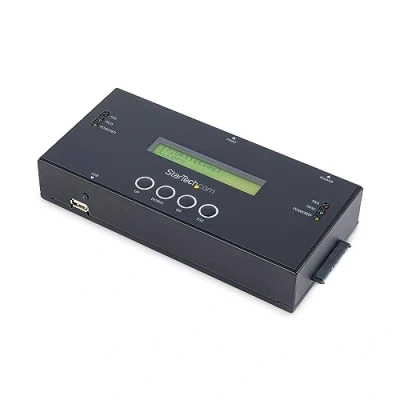 DUPLICATE AND ERASE SAS / SATA DRIVES: This standalone 1:1 SAS and SATA drive duplicator and eraser supports 2.5/3.5" drives- features 4 duplication modes and 5 erase modes, ideal for backup & restore or system setup and deployments DRIVE COMPATIBILITY: Supports 2.5/3.5" SAS and SATA HDDs/SSDs of any capacity - Upgradeable Firmware - Includes HDD rubber pads and SAS to SATA cables - Supported Interfaces w/ Adapter: eSATA, mSATA, IDE (SAT2IDEADP), M.2 SATA (SAT32M225) sold separately COPY AND ERASE MODES: 4 Duplication Modes: Up to 13 GB/min Sector-by-Sector (Whole Disk), System & File, All Partitions, and Percentage Copy - 5 Erase Modes: Quick Erase, Secure Erase, and 1/3/7-Pass Overwrite (DoD / NIST SP 800-88 Rev 1 Clear) LCD MENU DISPLAY: Use push button navigation to select duplication & erase modes and display drive info/errors - Use Copy & Compare to verify your cloned drive with the source drive when complete - Erasure logging w/ RS232 printer port for record keeping THE IT PRO'S CHOICE: Designed and built for IT Professionals, this hard drive duplicator is backed for 2 years including free lifetime 24/5 multilingual technical assistance