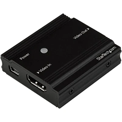 ULTRA HD 4K VIDEO SIGNALS: You can achieve resolutions up to 4K at 60Hz at distances of up to 30 ft. (10 m), the booster supports distances up to 115 ft. (35 m) away at 1080p 60Hz resolution. SLEEK DESIGN: With its small form factor design and no external power adapter, the HDMI booster is easy to hide, for a discreet installation. HASSLE-FREE INSTALLATION: The 4K booster is a cost-effective alternative to more expensive extension systems that require the installation of a CAT5 or CAT6 cabling infrastructure. LONG DISTANCE SUPPORT: The booster makes it easy to adjust your HDMI signal strength with equalization adjustment buttons. This is perfect for applications that may require varied distances. THE STARTECH.COM ADVANTAGE: StarTech.com offers a 2-year warranty and free lifetime technical support on this HDMI extender and has been the choice of IT professionals and businesses for over 30 years