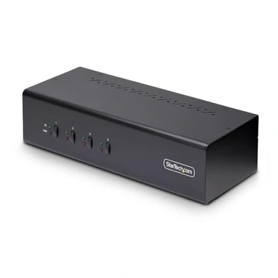 FAST SWITCHING: USB Emulation enables fast switching of a keyboard, video, and mouse between four DisplayPort/USB-A enabled desktops; USB Emulation ensures compatibility with combo keyboards/mice, as well as keyboards featuring additional function keys DUAL 4K 60HZ & USB 5GBPS: TAA Compliant DisplayPort 1.2 KVM Switch supports up to two 4K 60Hz DisplayPort monitors with two USB 3.2 Gen 1 (5Gbps) Hub Ports and two USB 2.0 HID Ports; Ideal for CAD/CAM, video editing, and content creation applications MULTIPLE SWITCHING OPTIONS: Universal KVM Switch can be controlled via push-buttons or hotkeys, with an audible buzzer providing confirmation; LEDs provide quick visual port selection status; Listen to audio from one computer, while controlling another DURABLE DESIGN: A durable steel housing helps prevent Electro-Magnetic Interference (EMI) enhancing stability and reliability of the KVM; Sturdy construction makes it ideal for installation in a variety of environments; 8kV Air/6kV Contact ESD protection OUR ADVANTAGE: Included connectivity tools for IT Pro's and IT help-desk support teams with USB Event Monitoring for logging USB device connections with timestamps, and Windows Layout to restore windows locations upon switching hosts