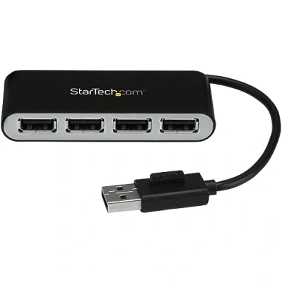 StarTech.com 4 Port USB Hub - 4 x USB 2.0 port - Bus Powered - USB Adapter - USB Splitter - Multi Port USB Hub - USB 2.0 Hub StarTech.com 4-Port Portable USB 2.0 Hub with Built-in Cable. Host interface: USB 2.0, Hub interfaces: USB 2.0. Data transfer rate: 480 Mbit/s, Product colour: Black, Silver, Housing material: Plastic. Power source type: USB. Width: 27 mm, Depth: 82 mm, Height: 15 mm. Package width: 146 mm, Package depth: 175 mm, Package height: 33 mm Add four USB 2.0 ports to your computer, using this cost-effective, compact USB hub Here’s a simple and cost-effective way to expand your computer’s connectivity by adding extra USB ports. This 4-port USB hub turns a single USB connection into four connections and features a compact, USB-powered design that makes it perfect for travel. The hub also features a small-footprint housing, which means it takes up less desk space. Add USB ports, virtually anywhere you go With its compact and lightweight design, this 4-port USB hub is tailored for mobility. You can easily tuck it into your laptop bag when traveling, which makes it easy to expand your connection options almost anywhere you need to. It’s perfect for connecting common USB devices such as a mouse, keyboard, or flash drive, right when you need them. Bus-powered design makes travel hassle free This versatile hub features a built-in USB cable and is bus-powered, so it draws its power directly from your computer’s USB port. This means there are fewer cables to carry with you when you travel because it doesn’t need an external power adapter. Convenient port access With all four USB 2.0 ports on one side, this hub makes it easier to access ports to connect or disconnect devices. Universally supported, for easy installation This universal USB 2.0 hub will work with a wide range of computers, because it requires no additional software or drivers. It installs automatically when you connect it to your laptop or desktop, so you can be up and running quickly. It also works with a range of operating systems such as Windows, Mac, Linux and Chrome OS, so it’s multi-platform compatible. The ST4200MINI2 is backed by a StarTech.com 2-year warranty and free lifetime technical support. The StarTech.com Advantage - Compact, lightweight housing with a small-footprint design for travel or desktop placement - Four USB 2.0 ports (up to 480Mbps throughput) - USB bus-powered and features a built-in cable, so you can carry the hub with you anywhere 2 Years Ports & interfaces USB 2.0 ports quantity 4 Hub interfaces USB 2.0 Host interface USB 2.0 Ports quantity 4 Features Certification CE, FCC, RoHS, REACH Plug and Play Yes Hot-swap Yes Housing material Plastic Product colour Black, Silver Data transfer rate 480 Mbit/s Network UASP support No Power Power source type USB Weight & dimensions Weight 33 g Height 15 mm Depth 82 mm Width 27 mm Packaging data Package weight 105 g Package height 33 mm Package depth 175 mm Package width 146 mm Operational conditions Operating relative humidity (H-H) 0 - 90% Storage temperature (T-T) -10 - 70 °C Operating temperature (T-T) 0 - 40 °C Performance Harmonized System (HS) code 84719000 Mean time between failures (MTBF) 282485876 h Design Cable colour Black