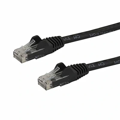 HIGH PERFORMANCE CAT6 ETHERNET CABLE: 100% copper for error-free Multi Gigabit 1/2.5/5Gbps connections; 10Gbps up to 50m; Fluke patch cord tested to comply w/ANSI/TIA-568-D Category 6 & ETL Verified POE SUPPORT: 24 AWG stranded copper conductors & UL rated wiring supports up to 100W for PoE devices like VOIP phone & security systems; IEEE 802.3bt & DTE power compliance reduces cable heating QUALITY CONSTRUCTION: ETL & UL certified wire; 50-micron gold-plated connectors prevent rust/corrosion to avoid costly network downtime; High quality PVC jacket resists bending or fraying damage EASY INSTALLATION: Snagless patch cord for easy installation & flexible disconnection in wiring conduits; Compatible w/Cat5e & earlier standards; Molded boots available for constrained spaces SPECS: Length: 16.5ft (5m) | Color: Black | 650 MHz Rated | Structure: 4 Pair UTP | RJ45 | Jacket: PVC | Wire Gauge: 24 AWG Copper | Wiring: ANSI/T568B | ETL Verified | Warranty: Lifetime