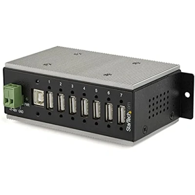 Scalable and rugged: This TAA compliant 7 port USB 2.0 hub gives you the scalability you need in harsh industrial environments or office workstations w/its rugged industrial grade metal housing Power based on your input capabilities: This industrial USB hub supports wide-range 7-48V DC terminal block input, giving you the flexibility to power the hub based on your power input capabilities The rugged hub also supports a wide operating temperature range (-40 to 85 degree Celsius) and offers ESD protection to each USB port, which can help prevent damage Connect more USB devices: This robust USB 2.0 hub offers 7x connection ports; the rugged USB hub supports the full 480 Mbps bandwidth of USB 2.0 and is backward compatible with previous USB devices Locate the hub where you need it most: You can install the hub with built-in mounting brackets, DIN mount rails and a 2 m USB host cable and you can securely mount the USB 2.0 hub to most surfaces
