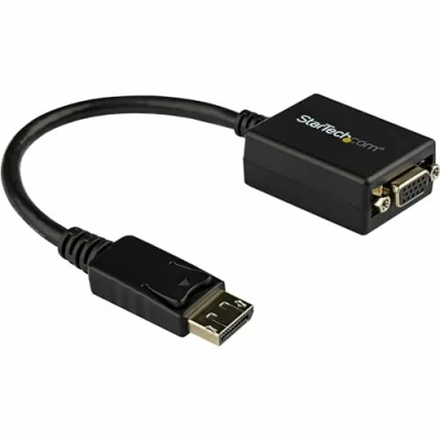 DISPLAYPORT TO VGA ADAPTER: DisplayPort 1.2 (HBR2) adapter connects a VGA display/projector supporting 2048x1280, 1920x1200 & 1080p at 60Hz; EDID & DDC pass-through ensure compatibility between source & display | 9" (22.5cm) cable | DisplayPort Certified COMPATIBILITY: Active digital to analog converter supports DP or DP++ source w/ standard DP connector incl workstations, desktops (AMD/Nvidia), laptops, small form factor computers & docking stations CONNECT TO A PRIMARY OR SECONDARY DISPLAY: Connect a VGA monitor or projector, or add a second display to your workstation using this DP to VGA display adapter; Compact design makes it easy to travel to and from office or home LATCHING DISPLAYPORT & SCREW LOCKING VGA: Video adapter has latching DP connector to ensure a solid host connection | Supports VGA screw locking cable to prevent cable from coming loose or accidental disconnection | Tested w/ VGA cables up to 25ft EASY TO USE: With no software or drivers required, the DP to VGA adapter dongle works with any OS including Windows, Ubuntu and macOS; DisplayPort male to VGA female