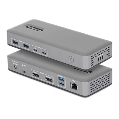 DUAL 4K60 OVER USB-C: Connect up to two 4K 60Hz DisplayPort displays through a single USB Type-C port with uncompressed video powered by your laptop's native GPU; Drive demanding workflows with high-performance visuals and no software compression DRIVERLESS DEPLOYMENT: Plug-and-play on Windows with no drivers or software to install (not compatible with macOS / ChromeOS); Engineered for scalable, zero-touch rollouts across shared workspaces, corporate environments, and BYOD deployments FLEXIBLE, HIGH-SPEED I/O: Equipped with 4× USB-A 5Gbps and 2× USB-C 10Gbps ports (one with 15W PD) to support legacy peripherals and modern high-throughput devices without compromising performance; Gigabit Ethernet port for a reliable wired connection MOUNT AND LOCK FOR A CLEAN, SECURE SETUP: Keep your dock protected and out of sight with built-in lock slots for physical security and support for Surface or VESA mounting (mounting accessories sold separately: SSPMSUDWM, DOCK-NUC-VESA-MOUNT, SSPMSVESA) THE IT PRO'S CHOICE: Our docking stations are rigorously tested in our Innovation Lab to ensure enterprise-grade reliability and cross-platform compatibility; Built to support large-scale deployments, Windows 11 upgrades, and the shift to AI-enabled PCs
