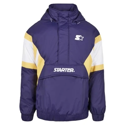 Colourful jacket for men from Starter in colour block design with bum pockets and hood Loose fit over jacket with inserts on sleeves, chest and shoulders High-closing half-zip with trim and hood with stand-up collar and elastic band with stoppers Includes front pocket and two bezels, all logos embroidered plus web patch above hem Visit the STARTER BLACK LABEL Store for even more stylish, sporty streetwear and accessories