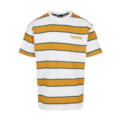 Starter Black Label Men's Logo Striped Tee T Shirt, White/Yellow, M