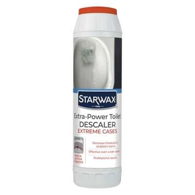 ULTRA CONCENTRATED: The powder descales, deep-cleans, and restores toilet bowl surfaces and base. Specially designed for stubborn stains and extreme cases. Removes even thick layers of limescale. ULTRA EFFECTIVE: Works even underwater. The powder activates upon contact with water. It deep-cleans toilet bowl surfaces and base, even when heavily scaled. FOR STUBBORN STAINS: Suitable for standard toilet bowls and surfaces. Septic tank compatible when used up to twice a week. Effervescent powder effective on damp surfaces. Remove any toilet blocks and flush to moisten the bowl. Shake the closed bottle upside down several times, then sprinkle the powder onto the bowl surfaces and base. Leave to act for 30 minutes, then flush. STARWAX, EXPERT IN HOME CARE SINCE 1946: Effective and pleasant-to-use products, designed for perfectionists. Made in France. Packaging contains reduced amounts of virgin plastic.