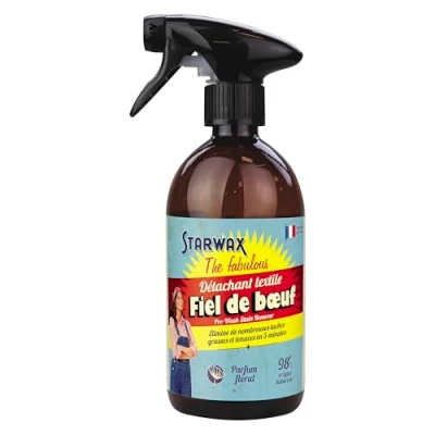 REMOVES STUBBORN STAINS RAPIDLY: Ox gall is a stain remover used prior to washing, for stubborn stains: blood, wine, vegetable oils, red fruit and tomato juices, curry, butter, etc, on all types of fabric, even the most delicate. It acts in just 5 mins. 98% NATURAL ORIGIN: Ox gall is a powerful acid that disperses stubborn stains. The recyclable container reduces environmental impact. Ox gall was used by the Egyptians in medicine to treat gangrene and ulcers. ENVIRONMENTALLY FRIENDLY: We have worked to make this product more eco-friendly by using ingredients of natural origin and responsibly managing natural resources. READY-TO-USE: Use this stain-remover spray before washing. The spray head allows for accurate targeting. It is not necessary to dampen the fabric first. It acts in 5 mins as the colourant-free foam formula penetrates into the fabric without damaging it. GREAT PERFORMANCE: At Starwax the Fabulous, we believe in the power of raw ingredients. We give credit to know-how, support the perfectionists of homemade products and share in the pride of getting the best possible result.